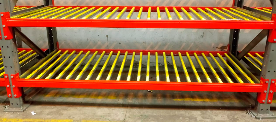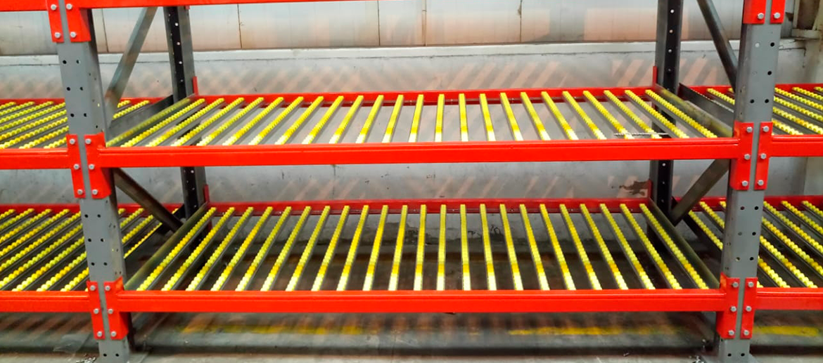 Sistema de almacenaje dinámico diseñado para operar con productos en forma manual o mecánica, de cargas pequeñas y/o medianas cuya manipulación se realiza en formatos no paletizados, como cajas o contenedores plásticos. Puede operar bajo la lógica FIFO o LIFO, pensado para optimizar la operación logística de empresas con altos niveles de rotación de stock y preparación de pedidos pequeños (picking). Apto para SKU de alta rotación y bajo volumen